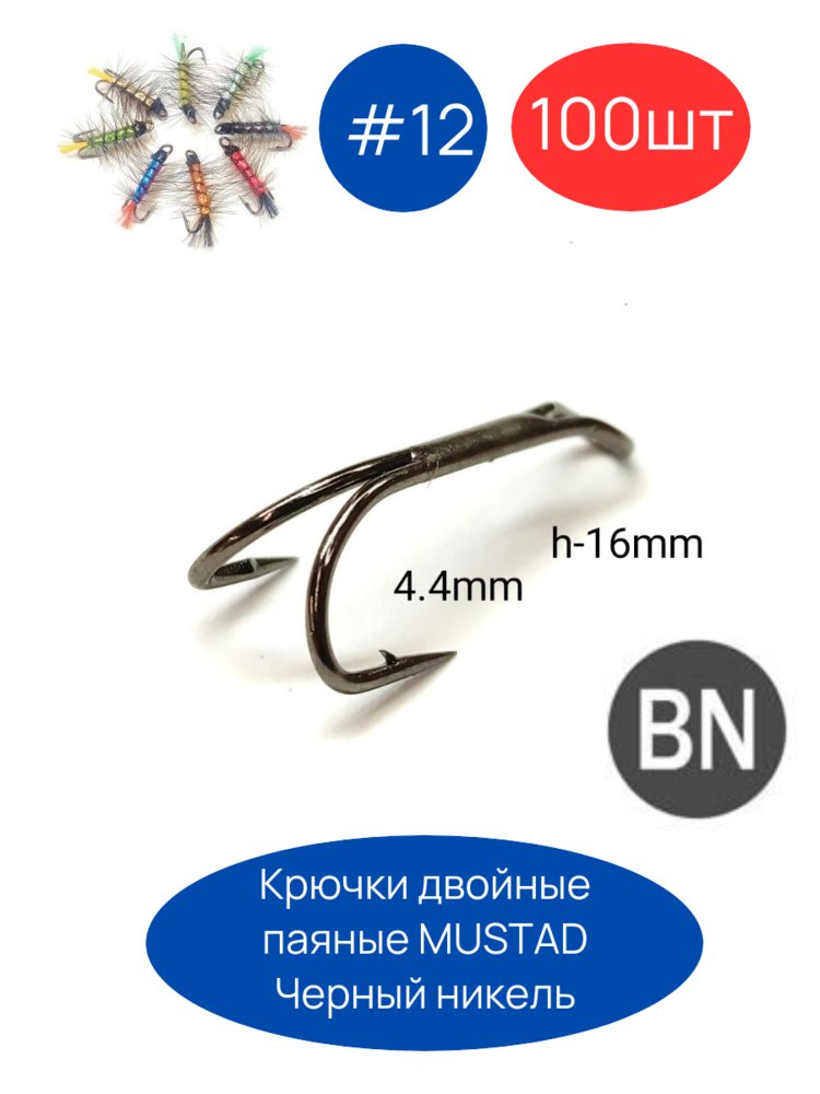 Крючок двойной, паянный MUSTAD, черный никель 100шт