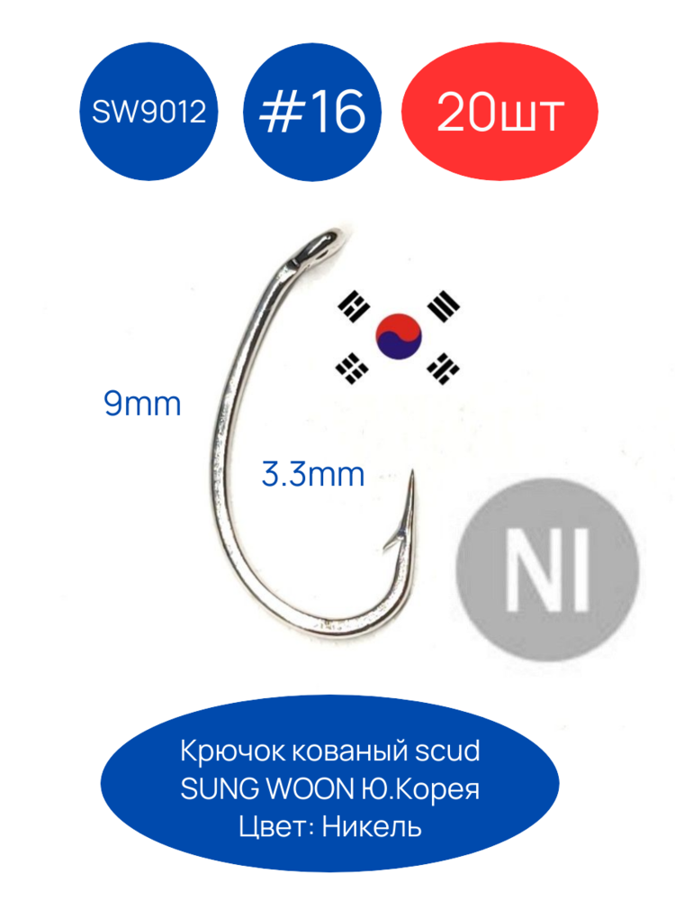Крючки кованные, двугибные, SUNG WOON SW-9012 Fly с хром-никелевым покрытием, производства Ю.Корея