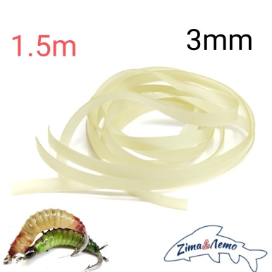 Примерно на 50 мушек. В упаковке 5 полосок по 30 см. Ширина: 2мм для крючков #16, 14. 3мм для крючков #12, 14. Ширина 4 мм для крючков # 6, 8, 10.